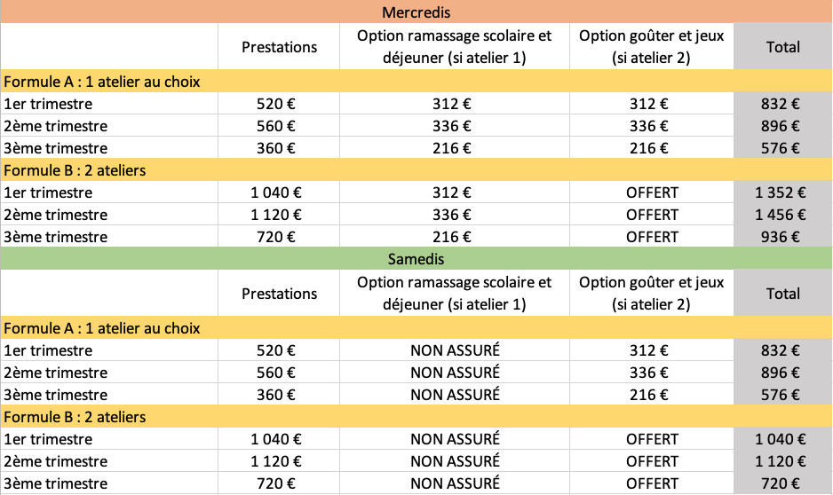 Les horaires sont adaptés au rythme des enfants tout en prenant en compte le rythme des parents.